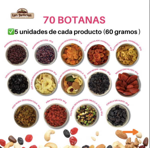 - 5 bolsitas de60 gr FRUTA MIX DESHIDRATADA (MEZCLA)