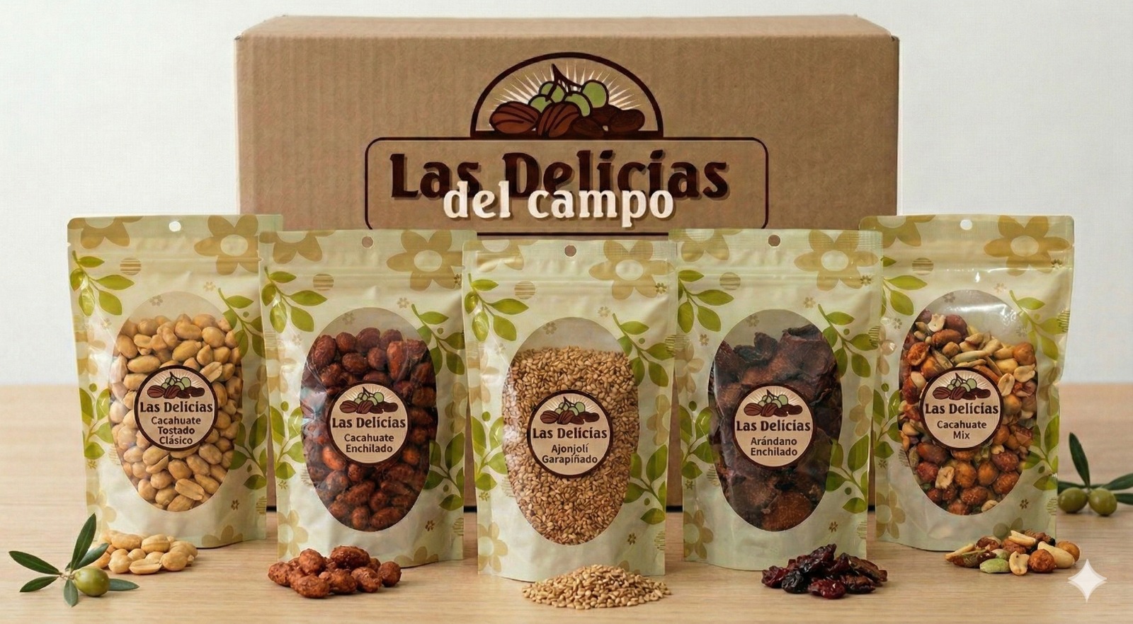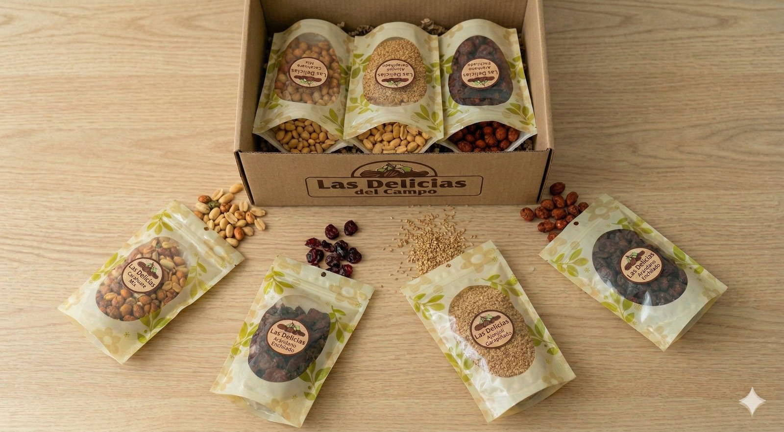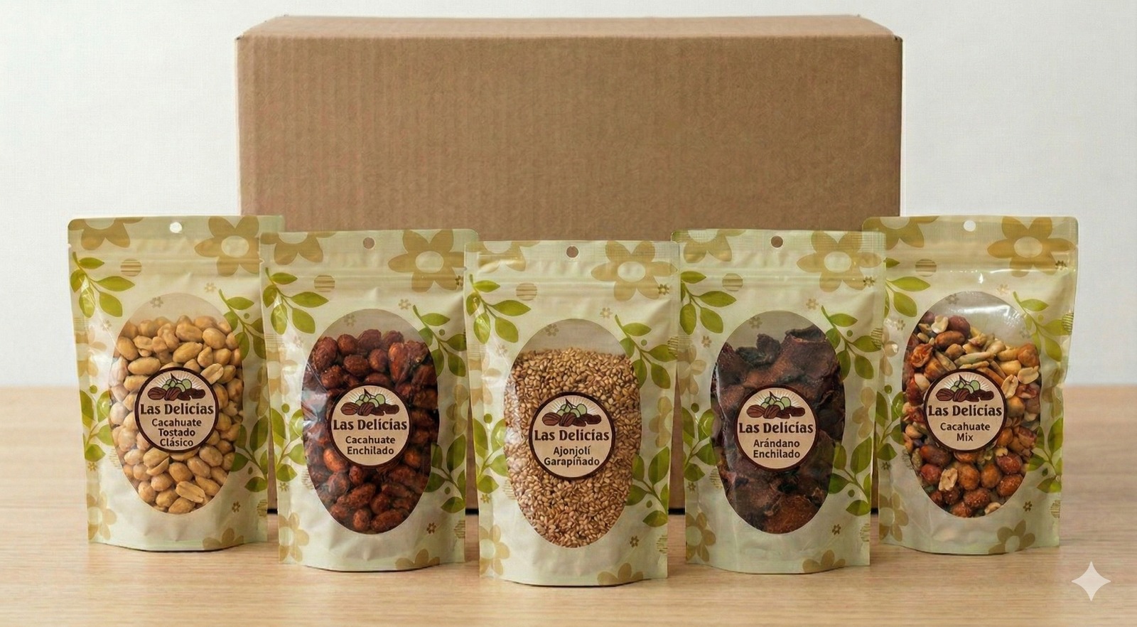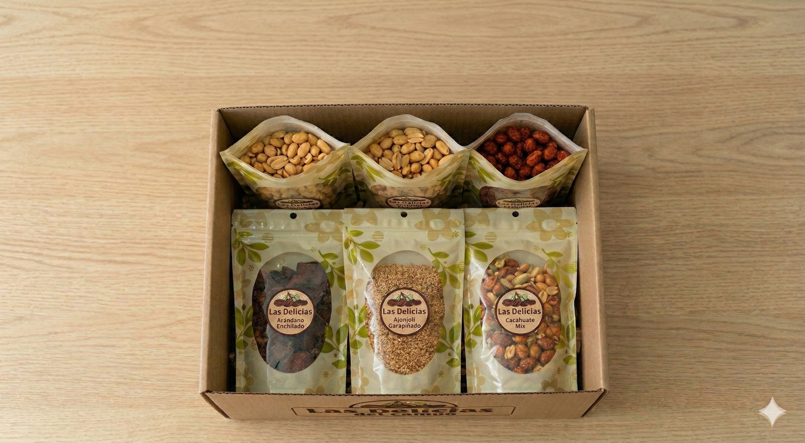 Combo antojo clásico: Cacahuate (200gr x2), Ajonjolí garapiñado (200gr), Arándano enchilado (200gr), Cacahuate mix (200gr).